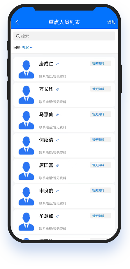 通过可视化地图管理及网格员的管理,将每个区域具体划分到每个负责人,真正做到责任到人、关系到户
